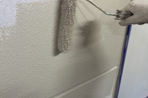 ローラーを使い下塗り色を手すりフェンス全体に透けがないようにしっかりと塗っていきます。